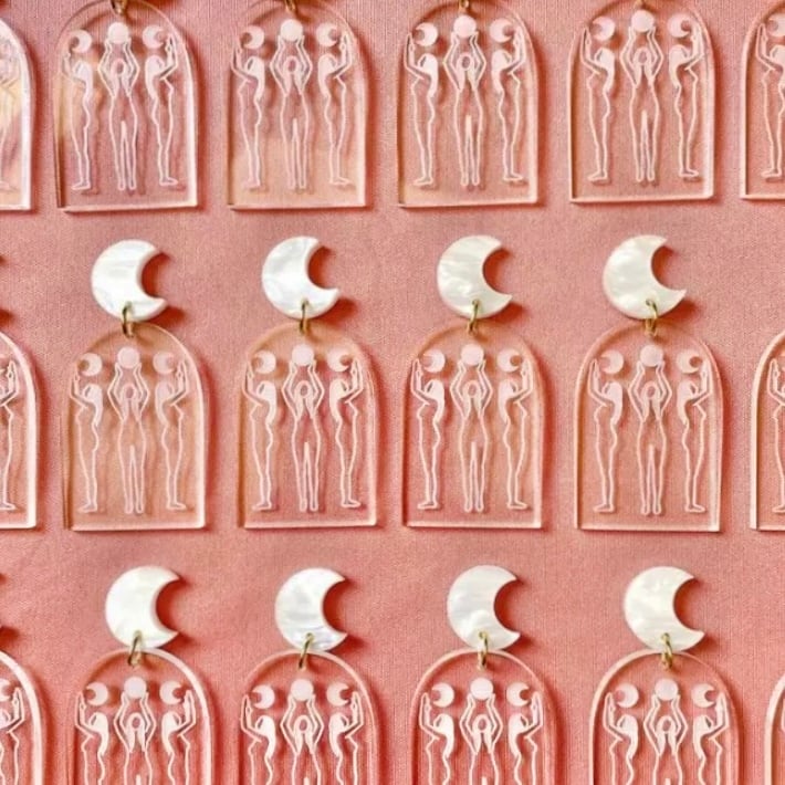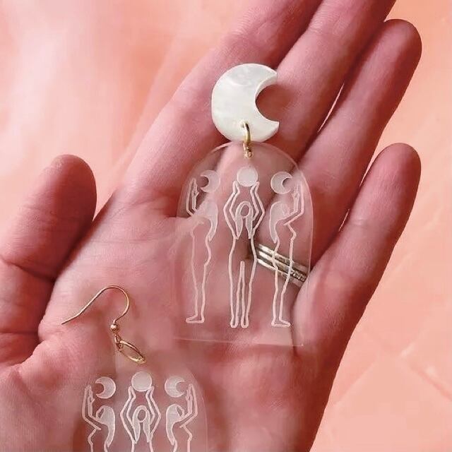 《2個セット》三相女神が満ちゆく月・満月・欠けゆく月のシンボルを掲げているデザインの大ぶりピアス